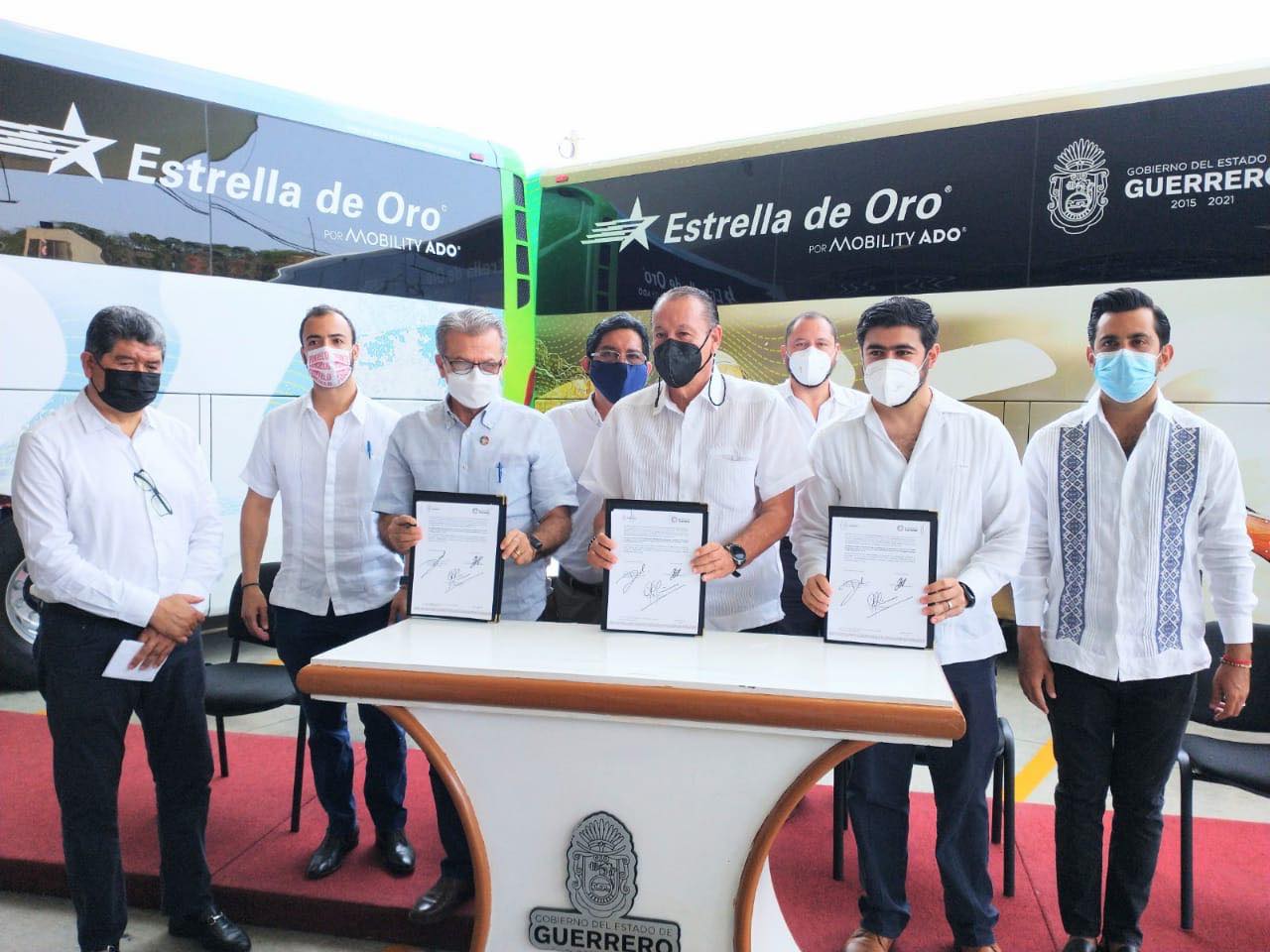 También se firmó el convenio de coordinación y colaboración turística entre la empresa Estrella de Oro y el Gobierno del Estado de Guerrero bajo las cláusulas que se comprometen a cuidar y mantener los protocolos sanitarios en sus instalaciones y autobuses y con ello prevenir los contagios en sus pasajeros, además dieron el banderazo de arranque a la promoción turística de los atractivos turísticos de Acapulco a través de los autobuses de Estrella de Oro.