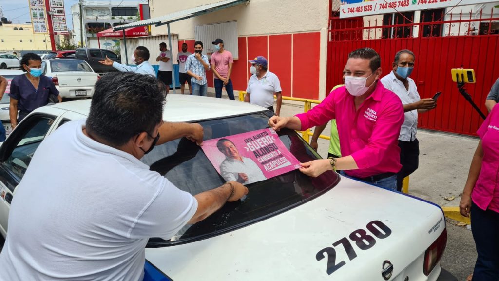 Acapulco, Gro., a 12 de mayo de 2021.- El candidato del partido Fuerza por México, José Alberto él ‘Güero’ Alonso Gutiérrez se comprometió a dar el cincuenta por ciento permanente en el costo de las licencias de conducir para todos los transportistas del puerto.