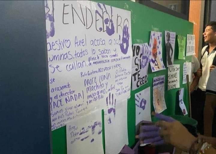 Cabe recordar que ayer miércoles 8 de Marzo, se conmemoró el Día Internacional de la Mujer, donde cientos de mujeres marcharon sobre la costera Miguel Alemán y un colectivo coloco pancartas en la fachada del plantel educativo, las cuales fueron retiradas por el personal administrativo.