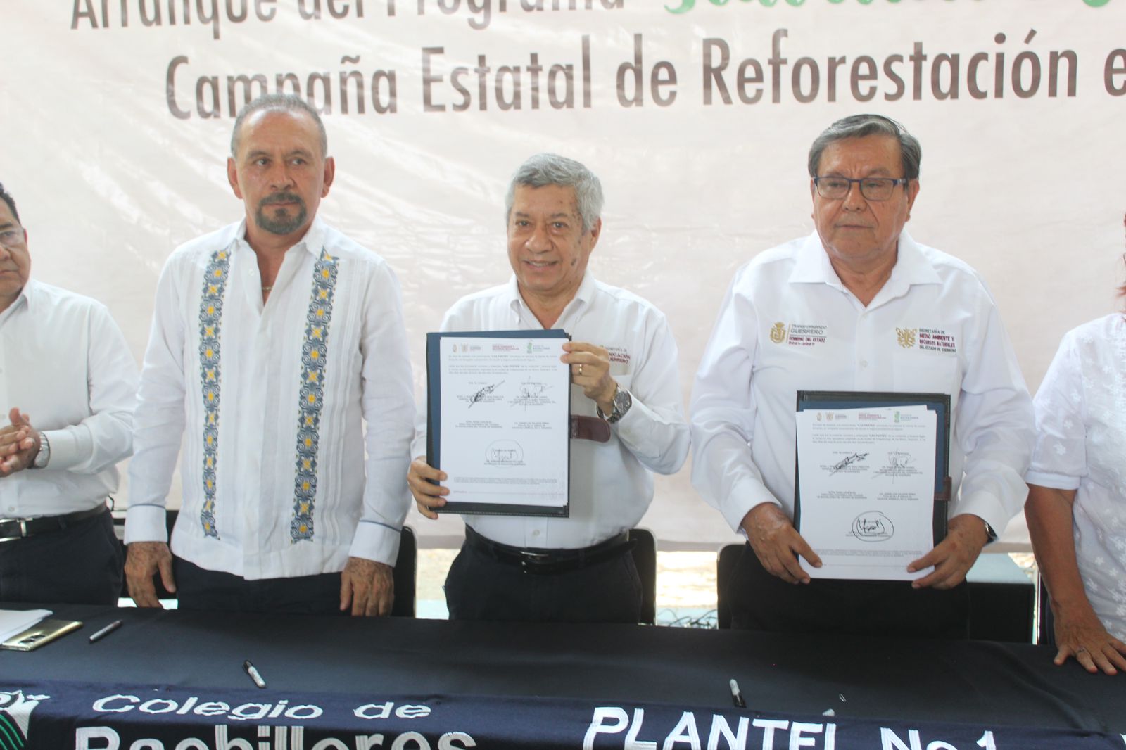 A la firma asistió como testigo, el titular de la Secretaría Educación Guerrero, Marcial Rodríguez Saldaña, quien invitó a la comunidad educativa a trabajar en pro del cuidado del planeta y hacer conciencia de la importancia del medio ambiente y de los cambios climáticos que han registrado fenómenos atípicos