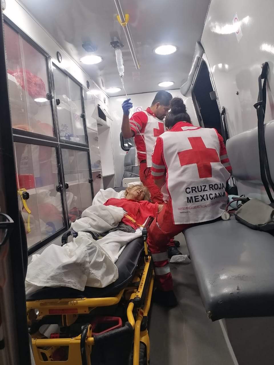 *Los elementos de la delegación de la Cruz Roja mexicana la auxiliaron al localizarla anoche tirada en el suelo