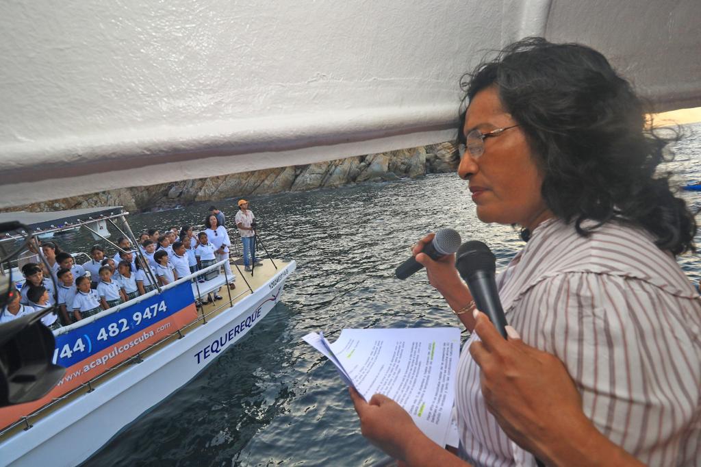 “La verdad, nos congratulamos de que Acapulco sea sede de este evento y sobre todo porque es algo inédito, donde con esto vamos a inaugurar, nuestra señora presidenta, va a inaugurar la temporada del avistamiento de ballenas. A todos y cada uno de ustedes, damos las gracias por estar presentes y ser partícipes de esto que va a suceder el día de hoy y darle un reconocimiento a estos hermosos niños que nos van a hacer el favor con sus cánticos, muchísimas gracias a todos y bienvenidos”.