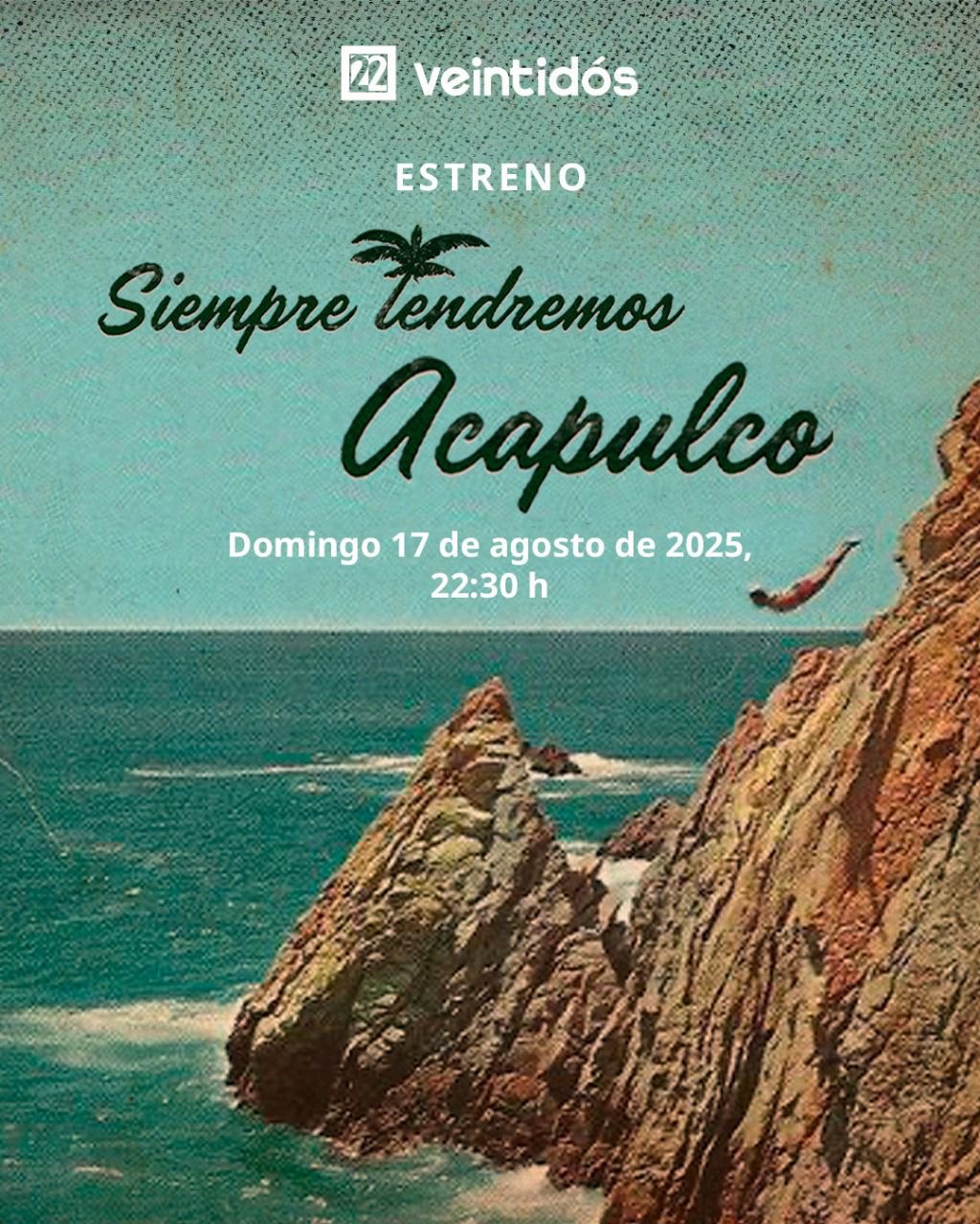 Acapulco, Gro., 16 de agosto de 2025.- Con el resurgimiento de Acapulco tras los embates de la naturaleza, el Canal 22 de México, realizó una docuserie llamada “Siempre tendremos Acapulco, una crónica sobre la vida e historia del puerto”, la cual consta de tres capítulos que abarcan la historia, cultura, belleza y magia que Acapulco ha brindado al mundo; siendo el primer referente turístico internacional, así como refugio preferido para quienes buscan atardeceres únicos con aguas cálidas y arena suave.