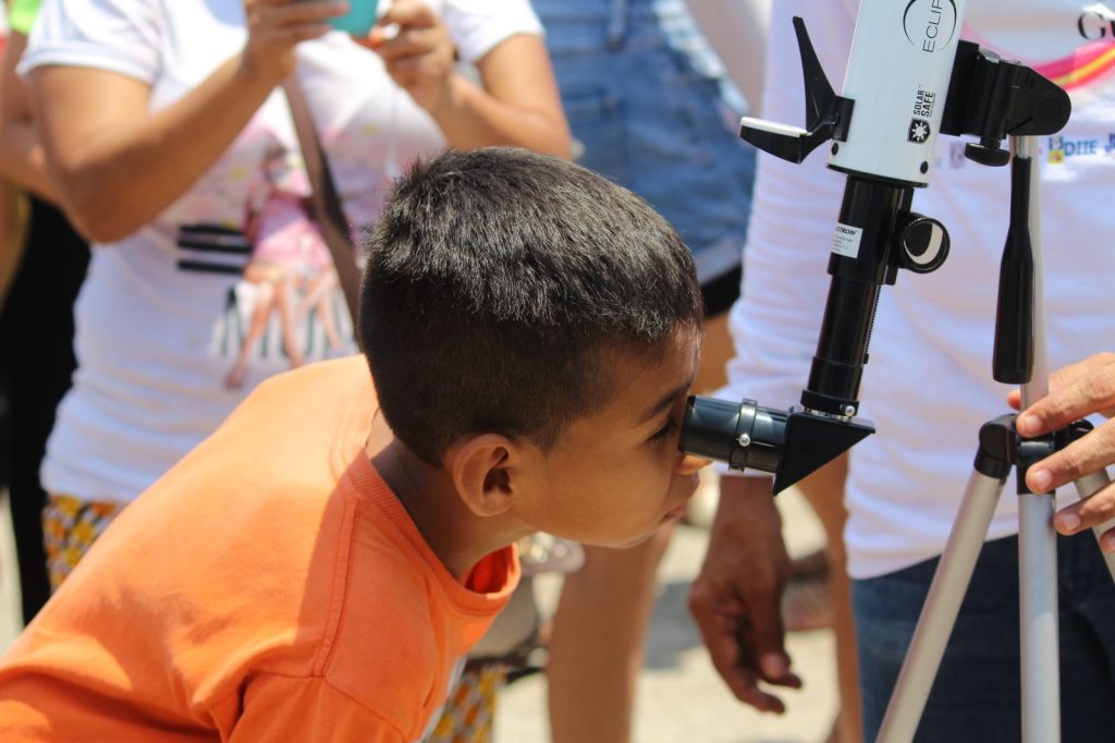 La curiosidad y la curiosidad moción de los pequeños estudiantes, generó filas para poder observar en los telescopios este evento astronómico.