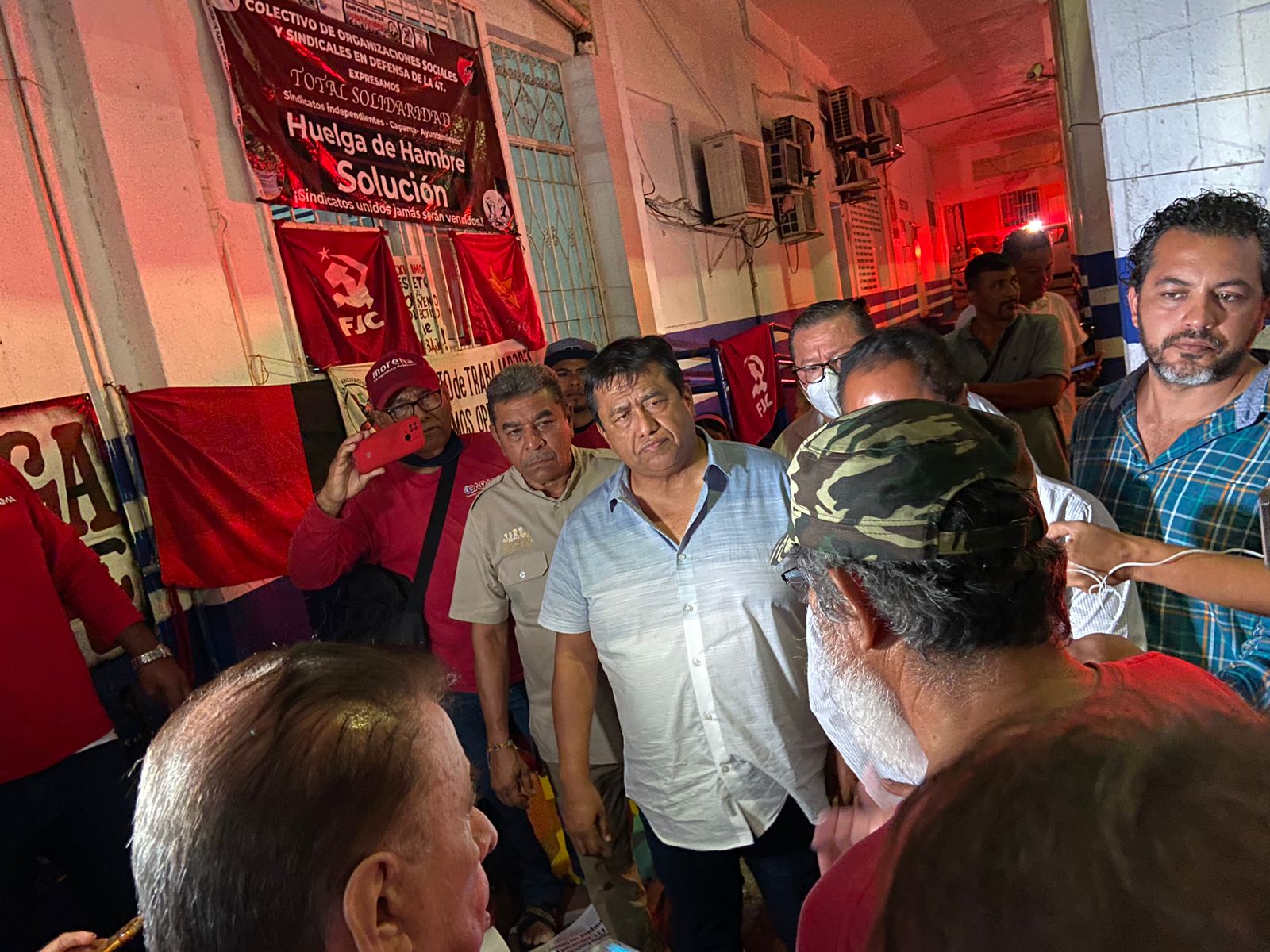 Acapulco, Gro., a 07 de febrero de 2023.- Funcionarios del Gobierno Municipal de Acapulco realizaron una visita a la huelga de hambre que realizan ex trabajadores de la Comisión de Agua Potable y Alcantarillado del Municipio de Acapulco (CAPAMA) en las oficinas centrales de la dependencia.
