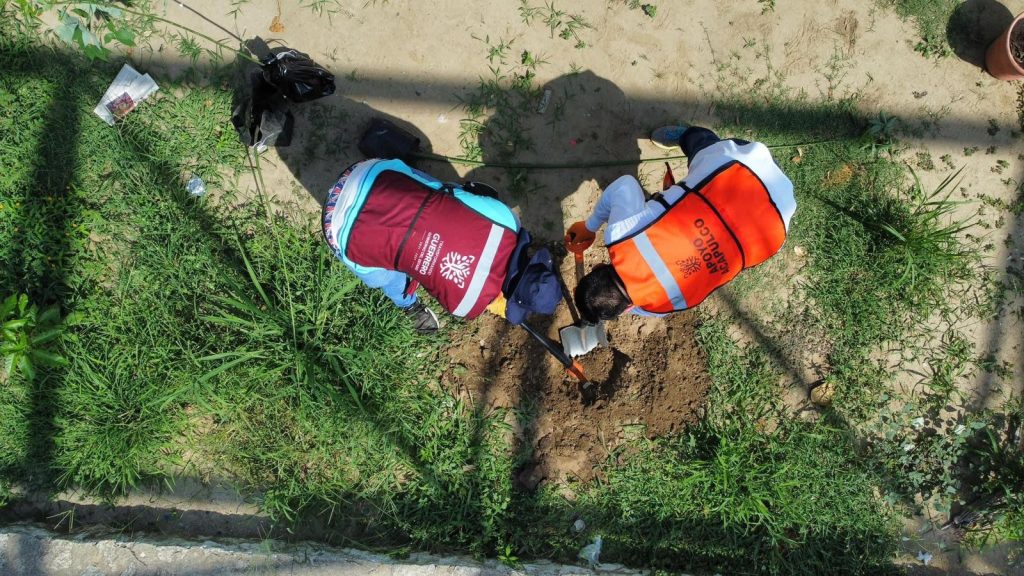La Secretaría de los Migrantes y Asuntos Internacionales de Guerrero continuó los trabajos de reforestación, así como la Secretaría de Desarrollo Urbano, Obras Públicas y Ordenamiento Territorial, que realizó limpieza en áreas verdes y retiro de escombro y basura.