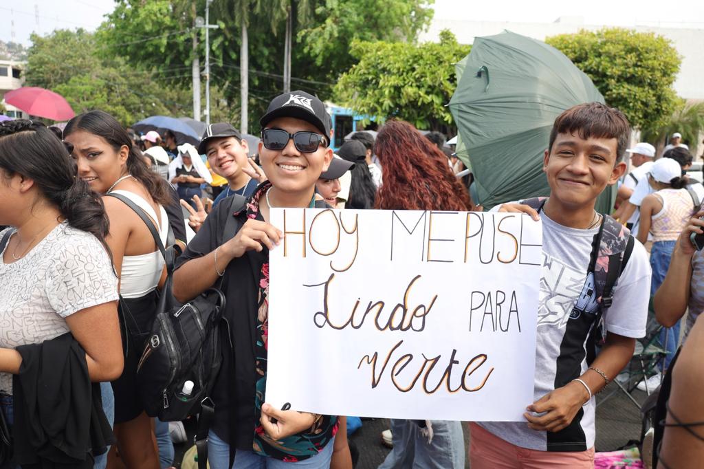 Acapulco, Gro., 23 de mayo de 2023.- Jóvenes acapulqueños, de Guerrero y de diversos estados de la República, agradecieron a la presidenta municipal, Abelina López Rodríguez, por la presentación del concierto de Kenia Os, con motivo del Día del Estudiante, evento totalmente gratuito que ofrecerá el gobierno de Acapulco en el Zócalo de la ciudad a las 6 de la tarde.