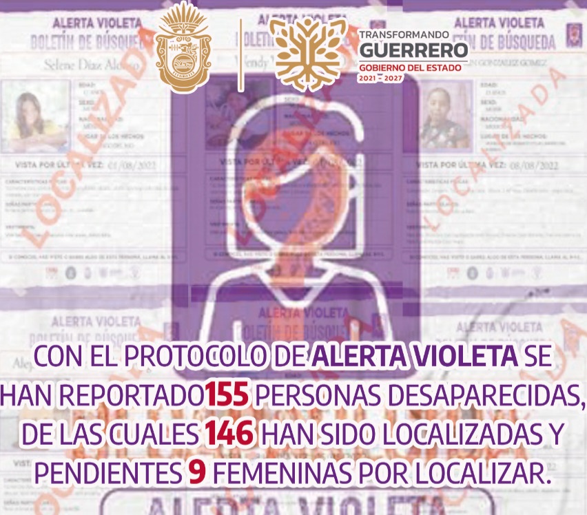 Este programa refleja la política de combate frontal a la violencia en contra de las mujeres, que impulsa el gobierno de Guerrero ya que como nunca antes se atiende esta problemática social, lo que ha permitido que desde el 18 de julio al 14 de diciembre, se hayan localizado a 146 mujeres y niños desparecidos, a través de la emisión de 141 alertas, quedando sólo por ubicar a nueve mujeres, de las cuales continúa su búsqueda.