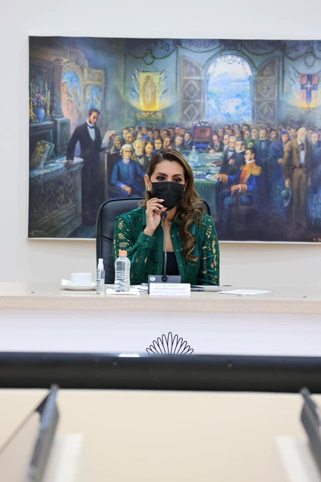 Durante la sesión, la titular del Ejecutivo estatal informó de los trabajos entre la Secretaría de la Mujer, Secretaría de Seguridad Pública estatal y Fiscalía General del Estado para continuar con las acciones integrales de apoyo en beneficio de las mujeres para erradicar la violencia.