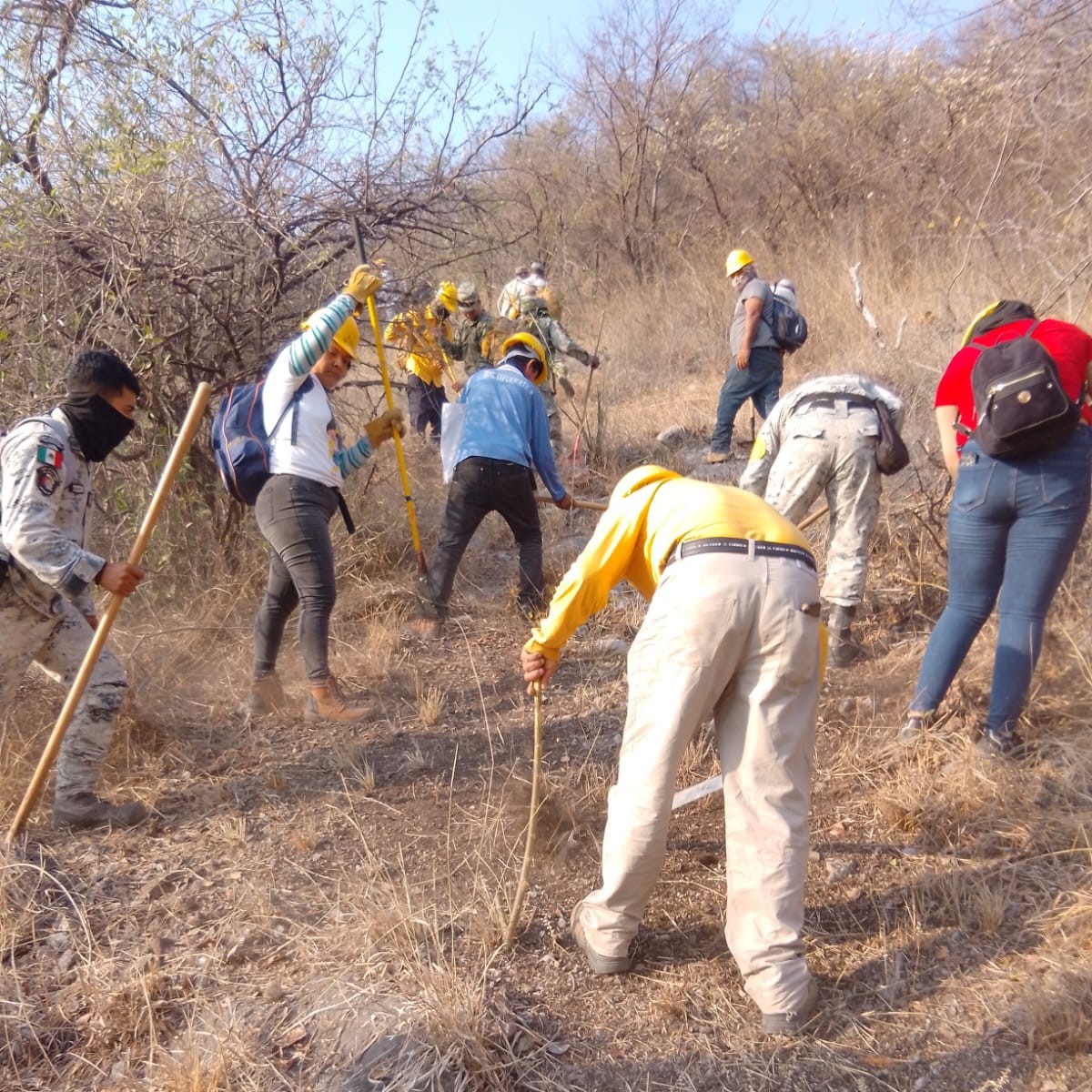 Las labores de combate han sido encabezadas por elementos de la Secretaría de Gestión Integral de Riesgos y Protección Civil, la Secretaría del Medio Ambiente y Recursos Naturales, la Comisión Nacional Forestal, Sedena, Guardia Nacional, Protección Civil Municipal y grupos voluntarios.