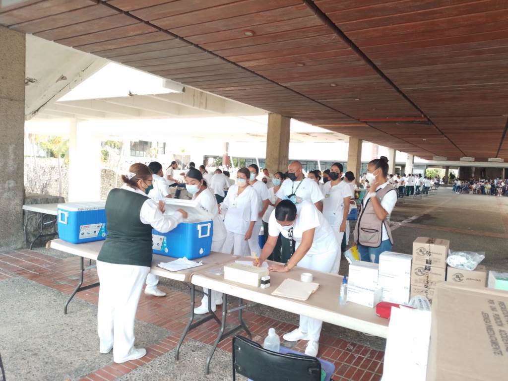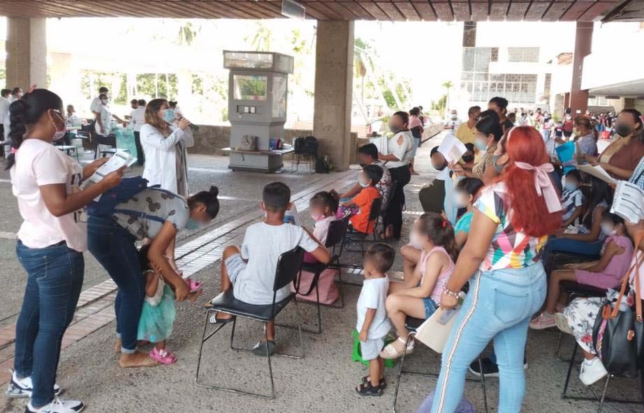 Acapulco, Guerrero, 15 de julio de 2022.- Personal del área médica, de enfermería, promotores de salud y trabajo social del Instituto Mexicano del Seguro Social (IMSS) en Guerrero apoyan en la vacunación contra COVID-19 para niñas y niños de 5 a 11 años.
