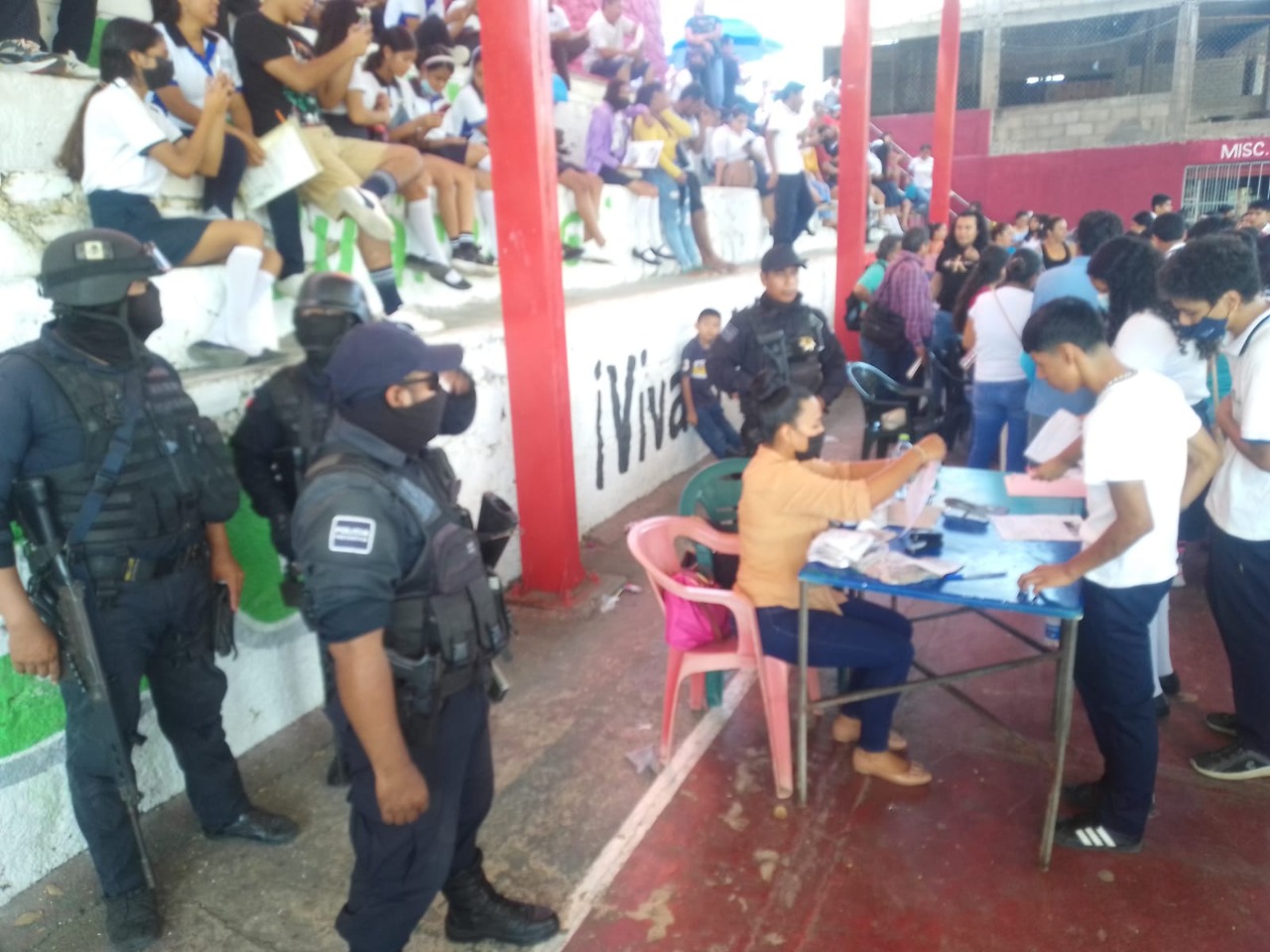Acapulco, Gro, a 13 de diciembre del 2022.- Además de las tareas de mantener la armonía en los poblados y comunidades del municipio, elementos de la Policía Rural, brindan apoyo de seguridad durante el pago de becas y programas federales.