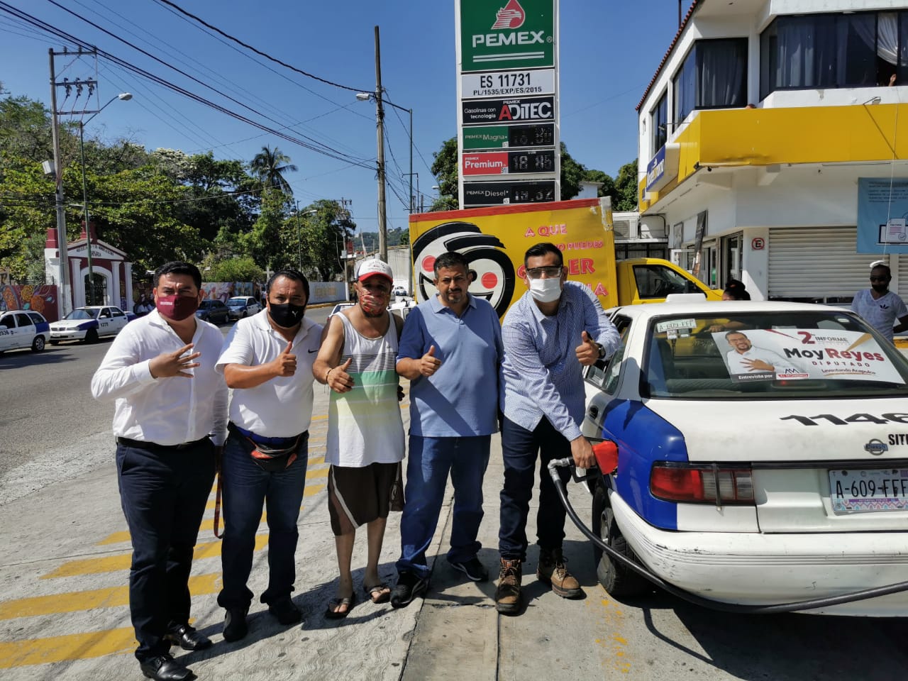 Con la finalidad de apoyar a las clases más desprotegidas que padecen la crisis económica a causa de la pandemia generada por el Covid 19, el Ciudadano de Tiempo Completo Yair García y el Diputado Local Moisés Reyes, apoyaron a transportistas con la dotación de gasolina.