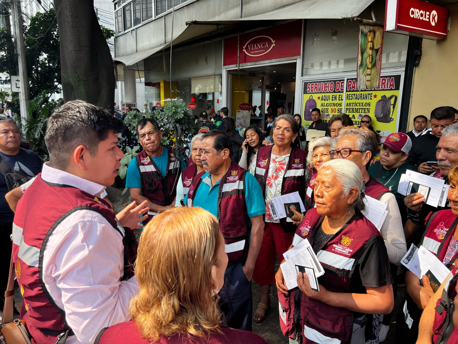 Siguiendo las instrucciones de la titular de la Secretaría de los Migrantes y Asuntos Internacionales (SEMAI), Silvia Rivera Carbajal, personal de la dependencia acompañó a los adultos mayores durante su cita en el Centro de Atención a Solicitantes (CAS), brindando orientación y apoyo para garantizar el cumplimiento de todos los requisitos del proceso.