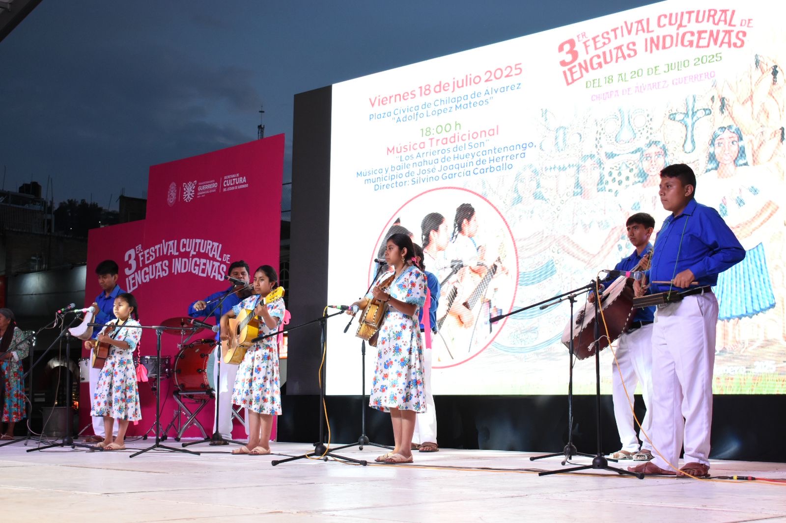 Además, se llevó a cabo la presentación musical de “Los Arrieros del Son”, agrupación que interpreta música tradicional náhuatl de Hueycantenango, municipio de José Joaquín de Herrera; así como de la Banda Filarmónica Juvenil “Grandeza de Tlapa”, dirigida por Fernando Espíndola de la Cruz, perteneciente al Instituto de Cultura y Arte del Ayuntamiento de Tlapa.