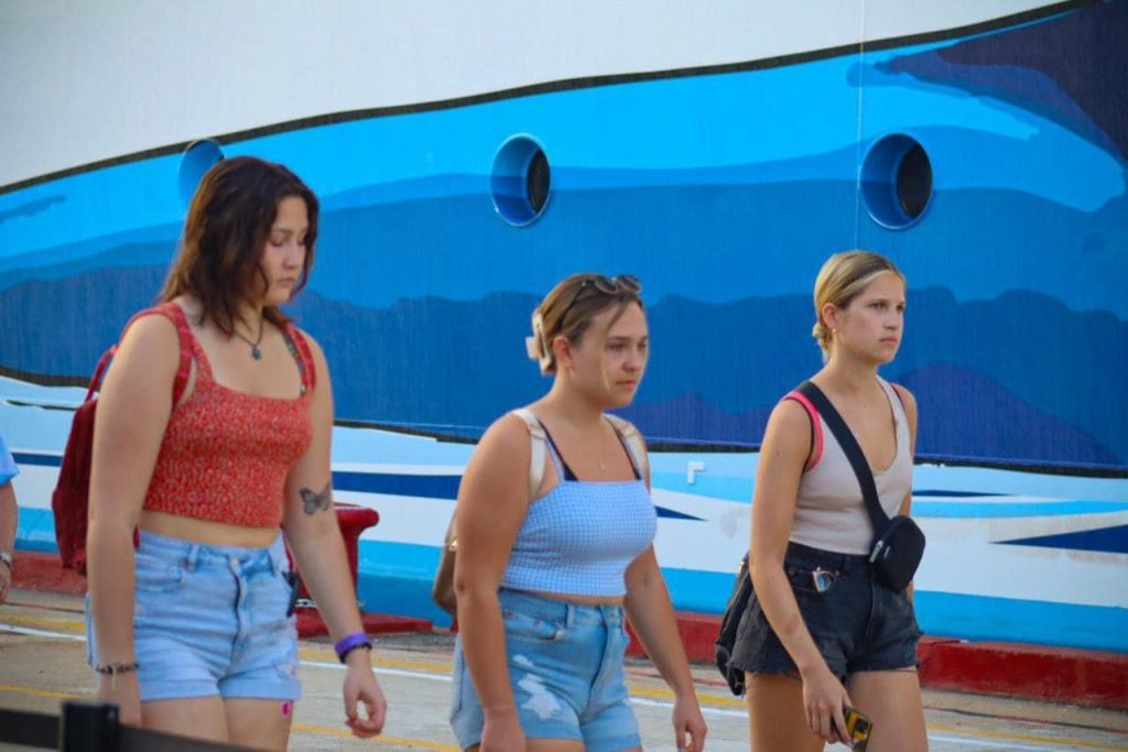 Acapulco,Gro., a 01 de febrero del 2023.- Fue cerca de las 6:30 de la mañana cuando el navío comenzó las maniobras de colocación en el muelle de la terminal, donde las 5 mil 390 personas a bordo, comenzarían su descenso a este destino de playa.