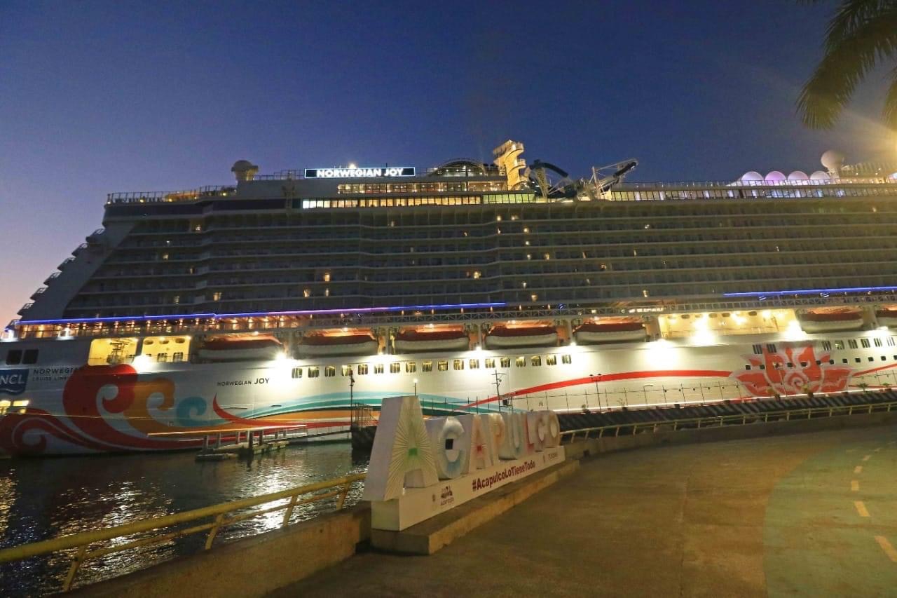 Acapulco, Gro., a 11 de enero de 2023.- Procedente de Puerto Vallarta y con más de 5 mil personas a bordo entre pasajeros y tripulantes, el crucero Norwegian Joy, arribó al puerto y permanecerá anclado en el puerto de Acapulco.