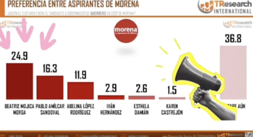 Cabe destacar, que si hoy fueran las elecciones, de acuerdo al estudio, Morena tendría el 46.7 dd las preferencias electorales para alcanzar la gubernatura de Guerrero.