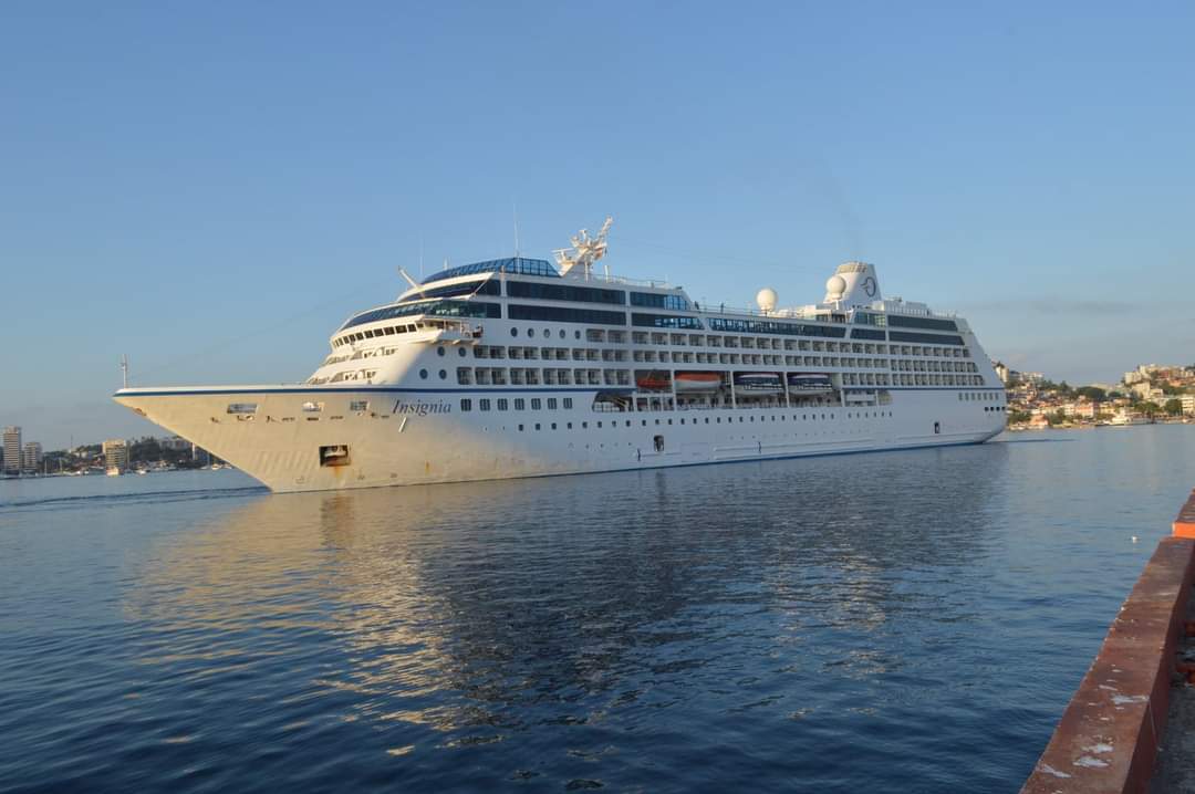 Acapulco, Gro., 18 de febrero de 2022.- Con 350 pasajeros y 400 tripulantes, arribó al puerto el crucero MS Insignia Oceania Cruises, siendo la cuarta embarcación de la temporada.