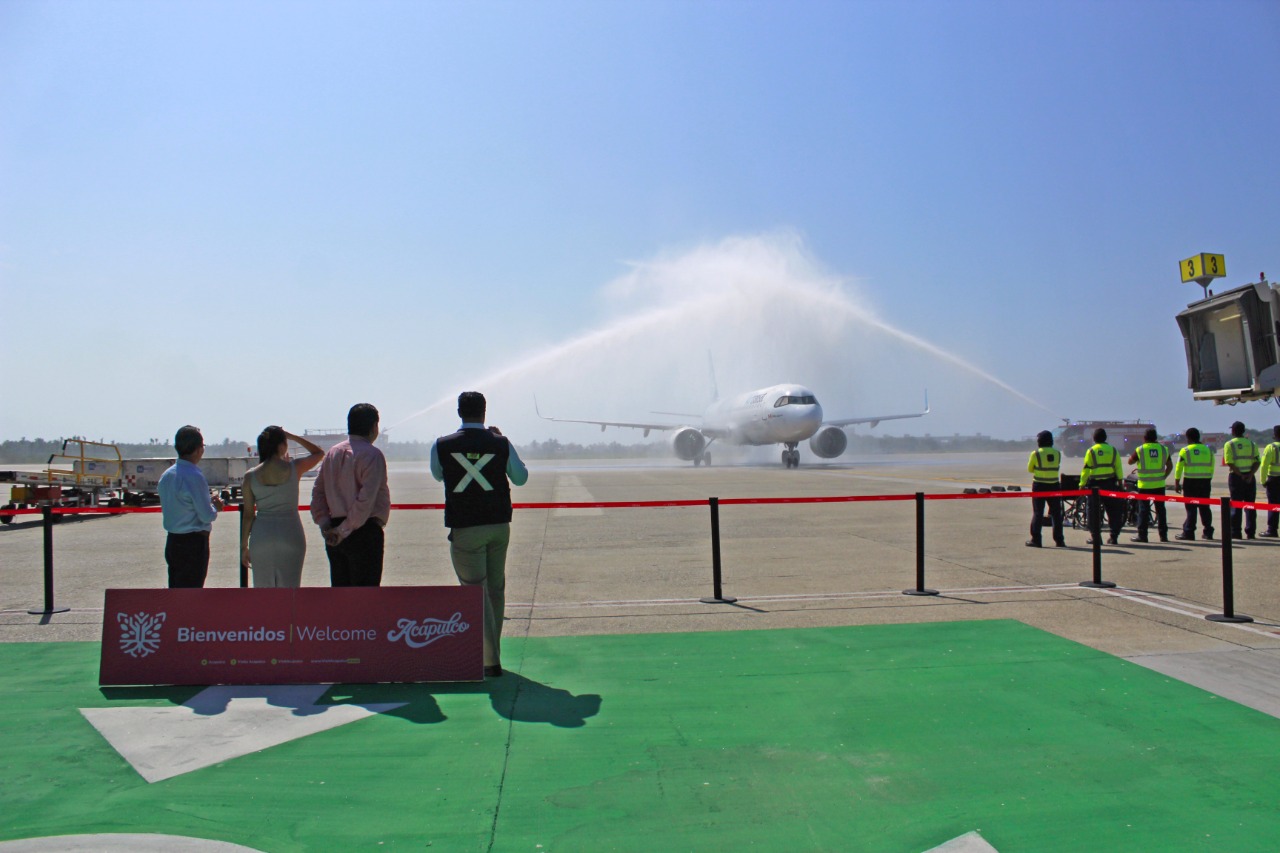 Acapulco, Gro., 20 de diciembre de 2022.- Este martes arribó al puerto de Acapulco, el primer vuelo chárter de la temporada de invierno 2022, con más de 170 pasajeros procedentes de Montreal, Canadá.