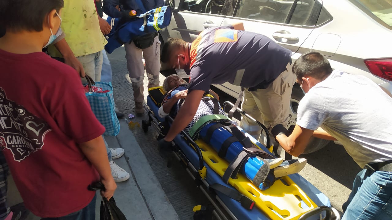 Además del golpe, la mujer quedó prensada con la parte baja de la facia del vehículo, a punto de ser arrollada por las llantas, por lo que resultó con golpes severos en diferentes partes de su cuerpo y su cabeza.