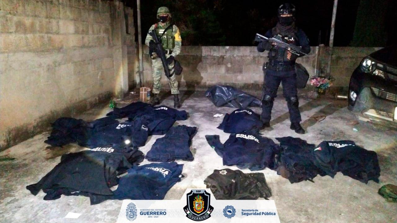 Chilpancingo, Guerrero, 28 de octubre de 2020.- Elementos del Grupo de Operaciones Especiales “Jaguar” de la Secretaría de Seguridad Pública del Estado, en coordinación con la Secretaría de la Defensa Nacional (SEDENA), aseguraron uniformes de la policía municipal y una camioneta con reporte de robo en la comunidad de Cacalotenango, municipio de Taxco de Alarcón.