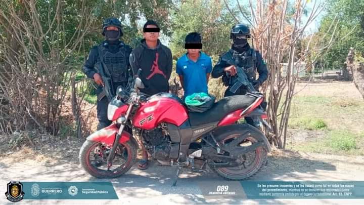 Chilpancingo, Guerrero, 17 de febrero de 2021.- Al efectuar recorridos seguridad y prevención del delito en el municipio de Tlapa, elementos de la Policía Estatal detuvieron a dos personas con presunta droga, además se les aseguró una motocicleta.