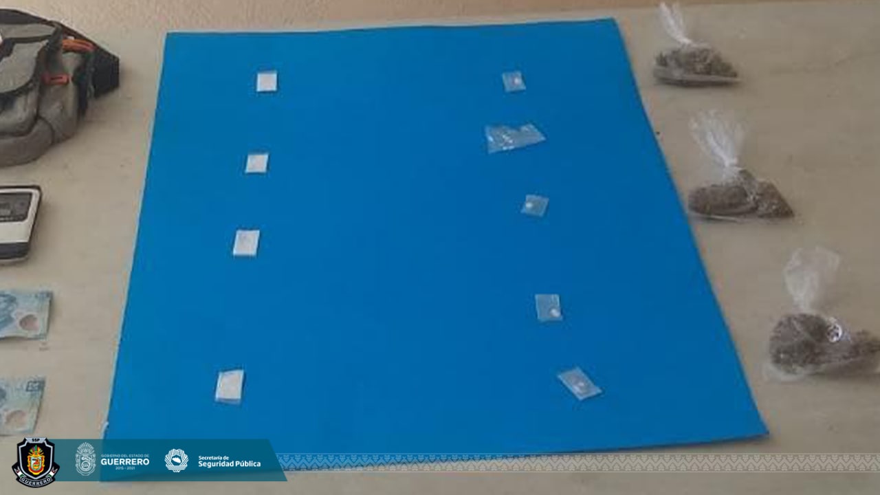 Chilpancingo, Guerrero, 04 de febrero de 2021.- En recorridos de prevención del delito por colonias del municipio de Acapulco, elementos de la Policía Estatal aseguraron dosis de presunta droga y detuvieron a un menor de edad.