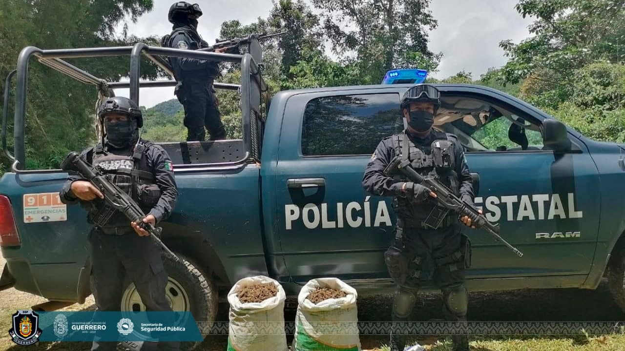 Chilpancingo, Guerrero, 14 de septiembre de 2021.- En recorridos de seguridad y prevención del delito, elementos de la Policía Estatal aseguraron presunta droga en el municipio de Atoyac de Álvarez, en la región de la Costa Grande.
