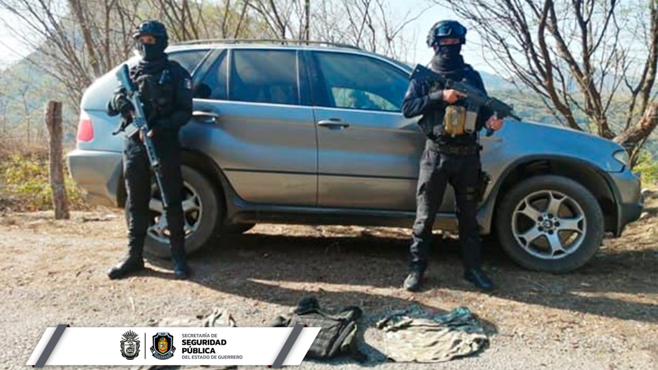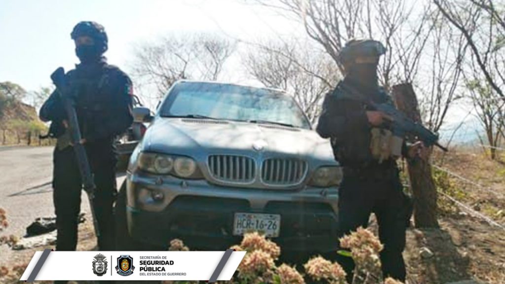 En respuesta, se realizaron recorridos en la localidad de El Terrero de dicho municipio, donde se ubicó un vehículo, marca BMW, tipo X5, modelo 2006, placas de circulación del estado de Guerrero, con blindaje nivel III-A y sin reporte de robo en las bases de datos.
