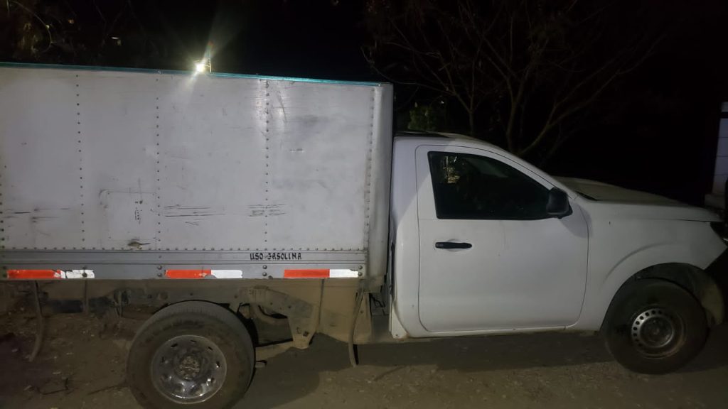 Uno de los vehículos asegurados es marca Nissan, tipo Pick Up, con placas de circulación del estado de Oaxaca y sin reporte de robo. En su interior fueron localizados cuatro cartuchos útiles.