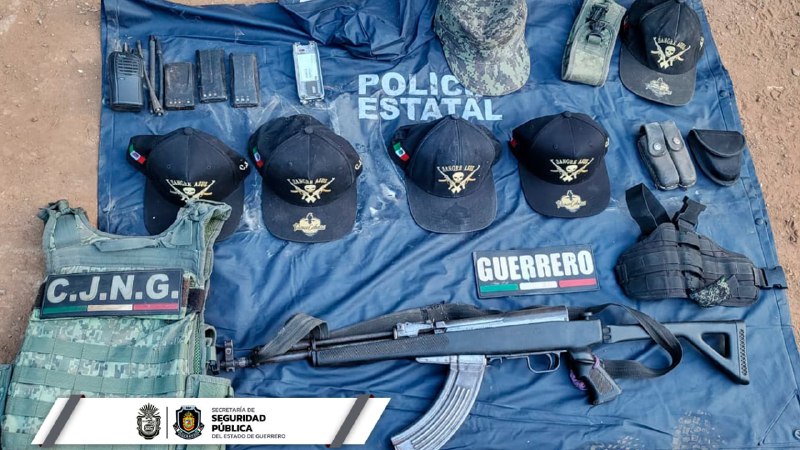 Chilpancingo, Guerrero, 15 de noviembre de 2022.- Derivado de la estrategia conjunta de seguridad, personal de la Policía Estatal, de la Secretaría de la Defensa Nacional (SEDENA) y Fiscalía General del Estado (FGE) aseguraron un fusil, cartuchos, equipos de radiocomunicación y un chaleco táctico en el municipio de La Unión, perteneciente a la región Costa Grande.