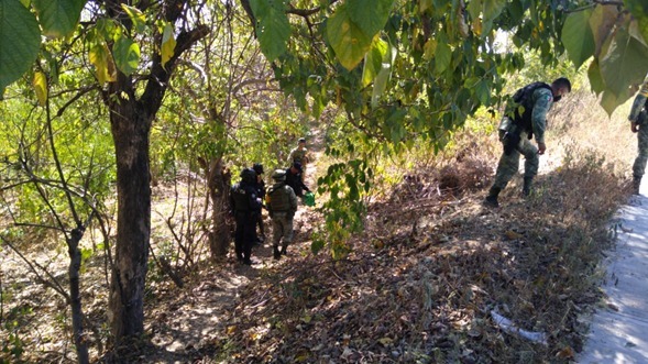 Acapulco, Gro., 04 de noviembre de 2020.- Elementos de la Policía Preventiva y de la Secretaría de la Defensa Nacional (Sedena) aseguraron en el poblado La Picuda envoltorios con hierba verde, con características propias de la marihuana, durante un recorrido para la prevención e inhibición del delito en la zona.
