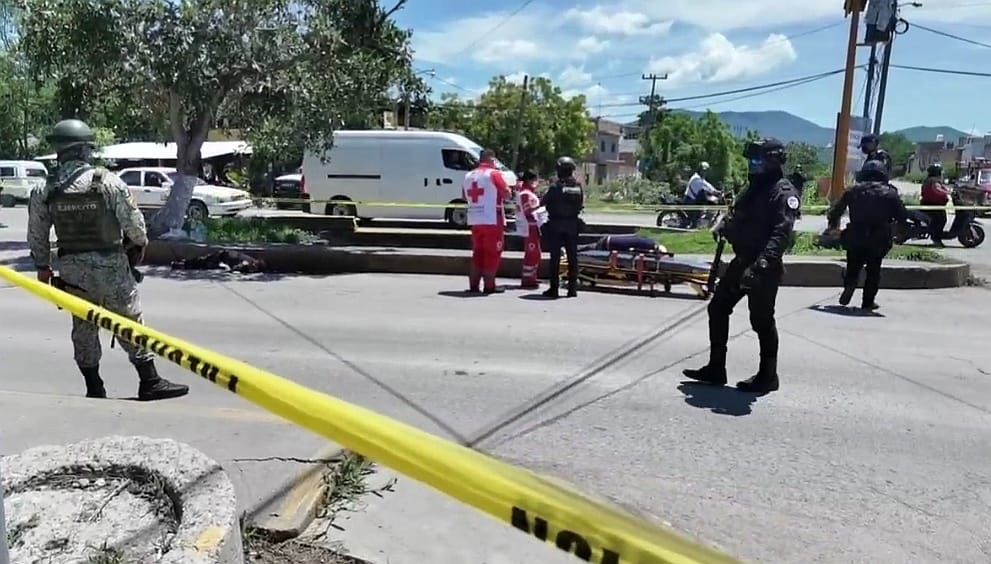 Tras el reporte de disparos en el lugar, arribaron efectivos del Ejército, Guardia Nacional, Policías Estatales y Ministeriales quienes confirmaron el hecho y localizaron a dos jóvenes tendidos en la calle con disparos en el cuerpo.