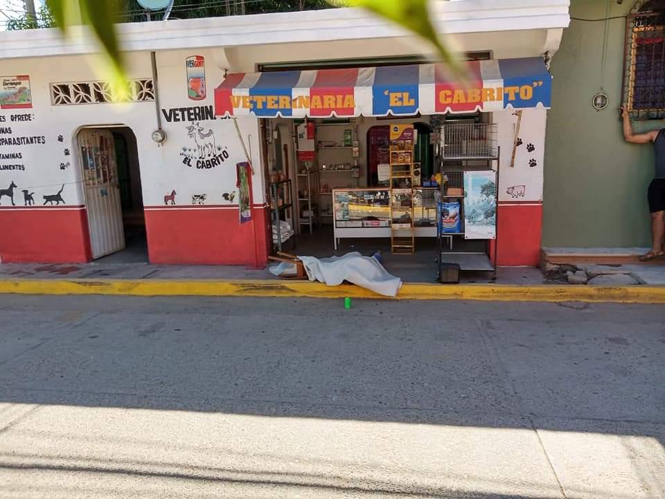 El infortunado hombre quedó tendido sin vida con la mitad del cuerpo sobre la banqueta y la otra en la entrada del negocio.