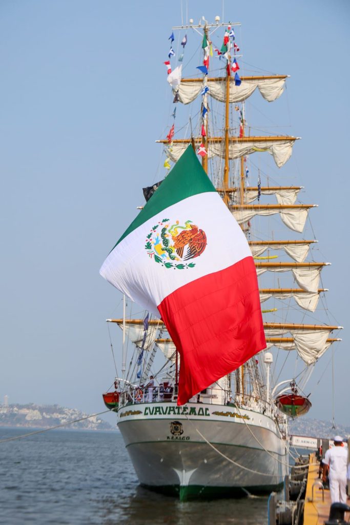 Acapulco, Gro., 06 de mayo de 2024.- La gobernadora Evelyn Salgado Pineda participó junto al comandante de la Décimo Segunda Región Naval, José Manuel Salinas Pérez, en la ceremonia de zarpe del Buque Escuela (B.E.) Cuauhtémoc, en el Crucero de Instrucción Tricontinental 2024, en el que 261 tripulantes -entre capitanes, oficiales, cadetes, elementos de Clases y Marinería, así como invitados de las Armadas de Guatemala y República Dominicana-, visitarán 13 puertos de 10 naciones, en un recorrido de 222 días y más de 25 mil millas náuticas, llevando el mensaje de paz y buena voluntad.