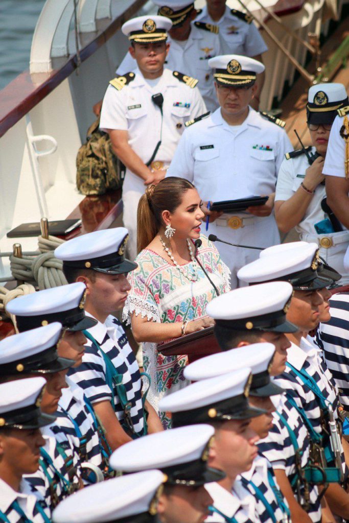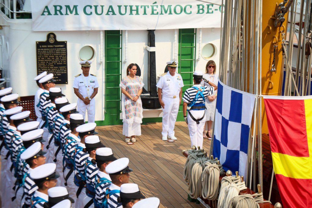 En el evento realizado en el muelle de la Décimo Segunda Región Naval, la gobernadora del estado expresó su beneplácito ante el inicio de esta nueva travesía, que refrenda el espíritu del B.E. Cuauhtémoc como embajador de México ante el mundo y una insignia de la Marina Armada de México, pues durante más de 40 años ha navegado con el mensaje de paz y buena voluntad del pueblo mexicano. Salgado Pineda enfatizó que el también llamado Caballero de los Mares, fomenta en su tripulación el espíritu de resiliencia, disciplina, trabajo en equipo y toma de decisiones.