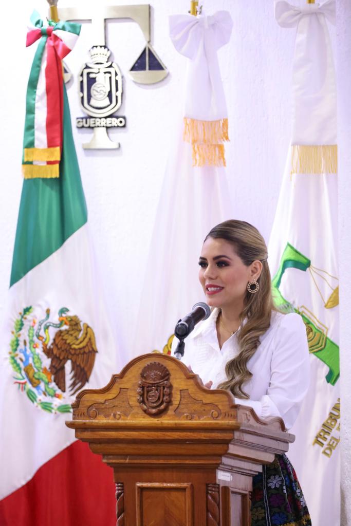 En el Auditorio Sentimientos de la Nación de la sede del Tribunal Electoral, la mandataria estatal destacó la labor de las y los magistrados en la defensa de los intereses de las y los guerrerenses para lograr una democracia funcional y justa en el estado.