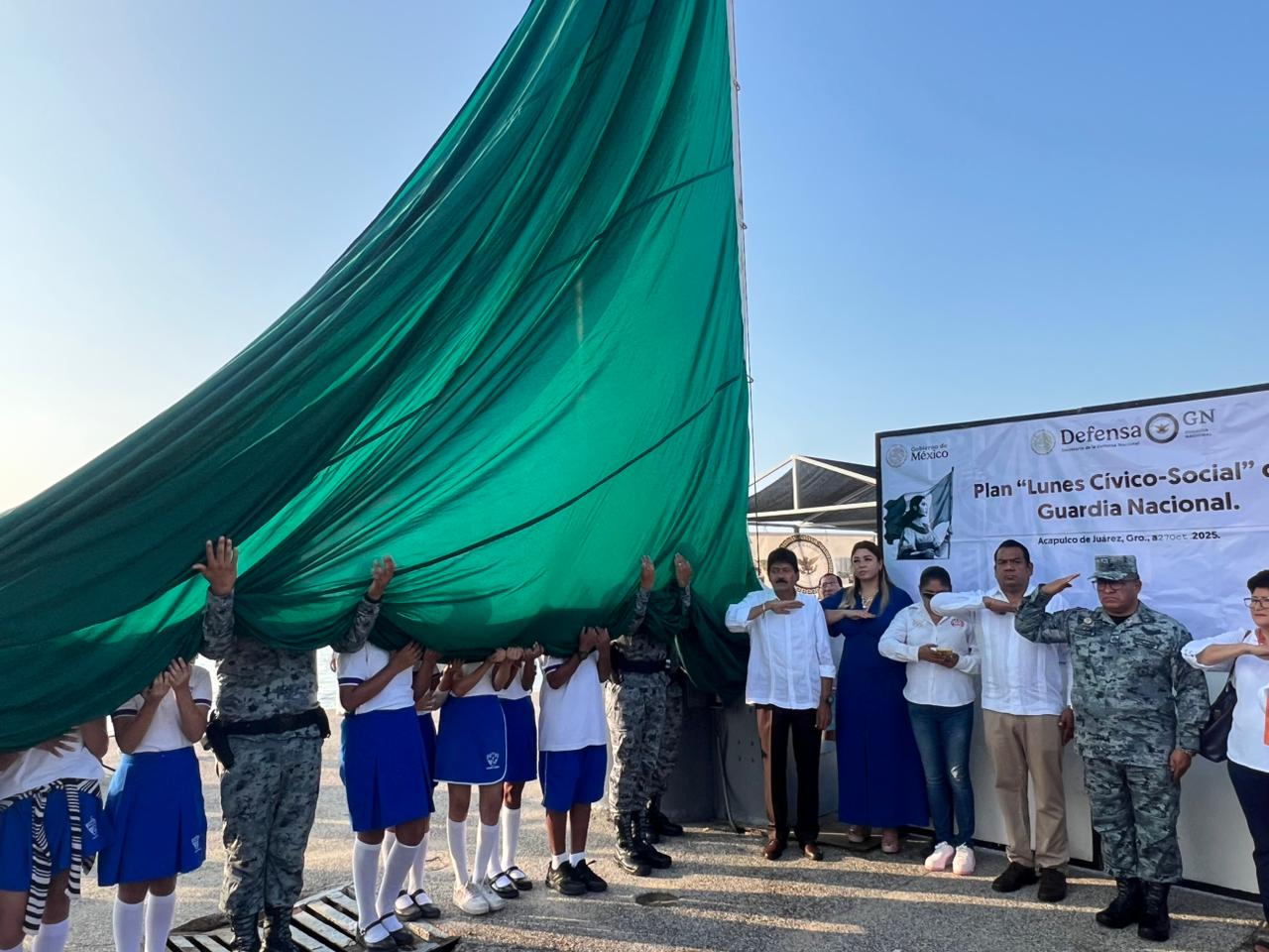 El Presidente de Infraestructura del Consejo Consultivo de Turismo Jesús Zamora Cervantes participó este lunes en la Ceremonia Cívica de Izamiento de Bandera en el Asta, con la escuela Lic Benito Juárez, para conmemorar el 176 Aniversario de la creación del Estado de Guerrero.
