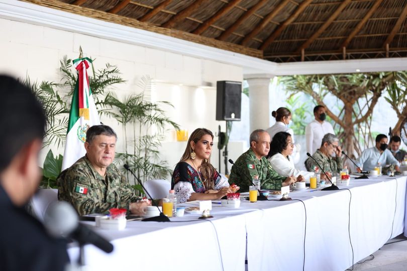 Chilpancingo, Gro. a 21 de diciembre de 2021.- Como parte del trabajo permanente de seguridad en Guerrero, la gobernadora del Estado, Evelyn Salgado Pineda; encabezó la Mesa de Coordinación para la Construcción de la Paz, en las instalaciones de la Octava Región Naval del Puerto de Acapulco, con la presencia de autoridades del orden federal y estatal, donde analizaron a detalle los hechos delictivos registrados en el Estado.