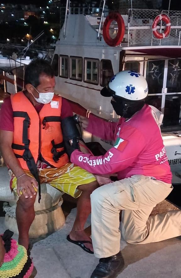 Más tarde, en una embarcación privada arribaron al lugar los elementos turísticos, donde sólo encontraron a un hombre llamado René Gómez Torres de 46 años, quien fue atendido por los paramédicos.