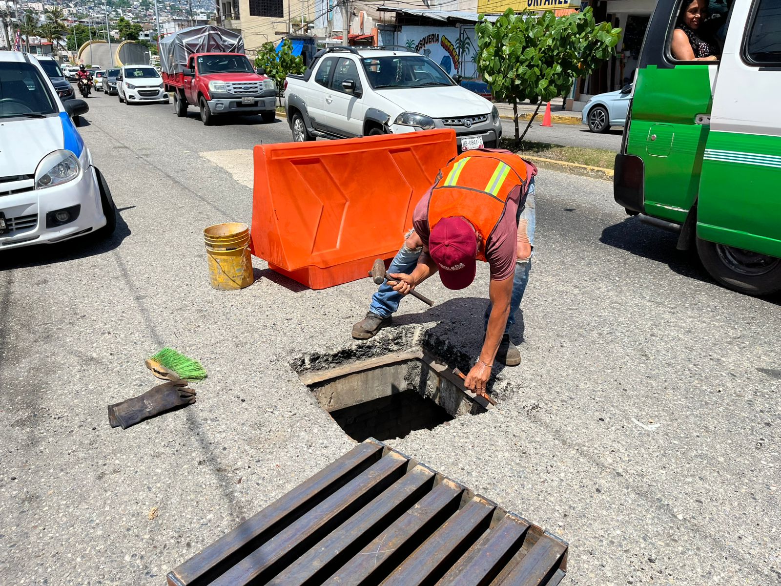 *Personal de Conservación y Mantenimiento coloca tapa de registro en Pie de la Cuesta y rehabilita rejillas pluviales en distintas vialidades