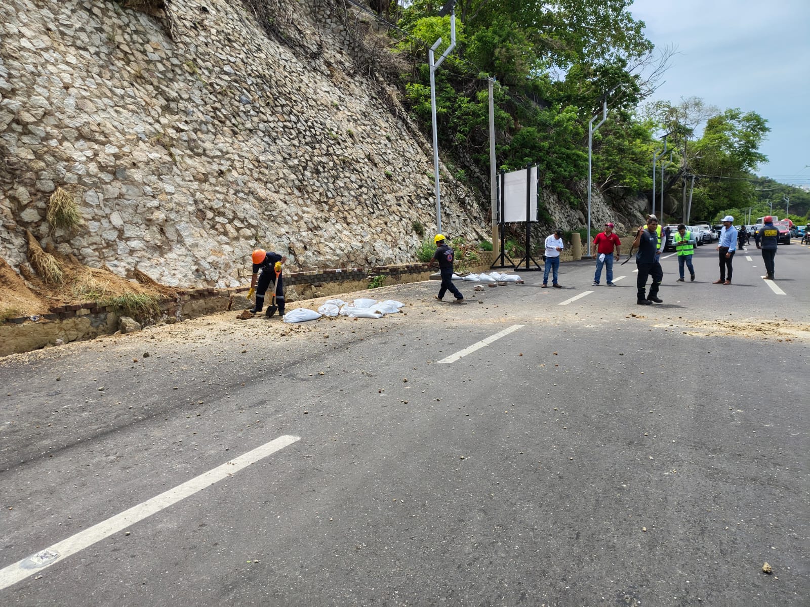 La mañana de este martes, personal de la Secretaría de Gestión Integral de Riesgos y Protección Civil Guerrero removió rocas de diferentes tamaños de la Escénica, que estaban a punto de colapsar, así como un deslave que obstruía la vialidad.