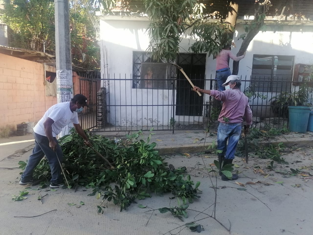 En la brigada realizada este día, participó una cuadrilla con 15 trabajadores quienes luego de podar distintos árboles de las calles y viviendas de la colonia, llevaron a cabo barrido y recolección de residuos.