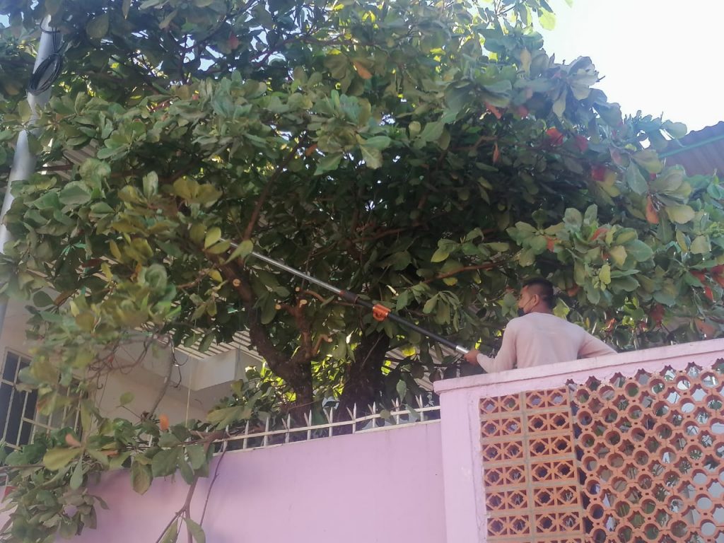 Acapulco Gro., 1 de febrero de 2022.- Como parte de la atención y respuesta inmediata a las peticiones de la ciudadanía, la Coordinación General de Servicios Públicos Municipales realizó este martes una brigada para podar árboles en la colonia Carabalí de este puerto.