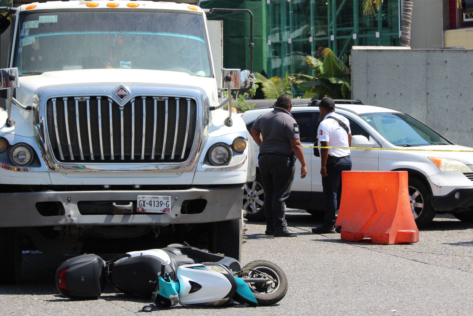 Acapulco; Gro., a 18 de marzo del 2025.- Un adulto mayor que viajaba a bordo de una motocicleta fue arrollado por un camión de carga, cuando circula sobre la avenida Costera Miguel Alemán cerca de la glorieta de la Diana Cazadora.