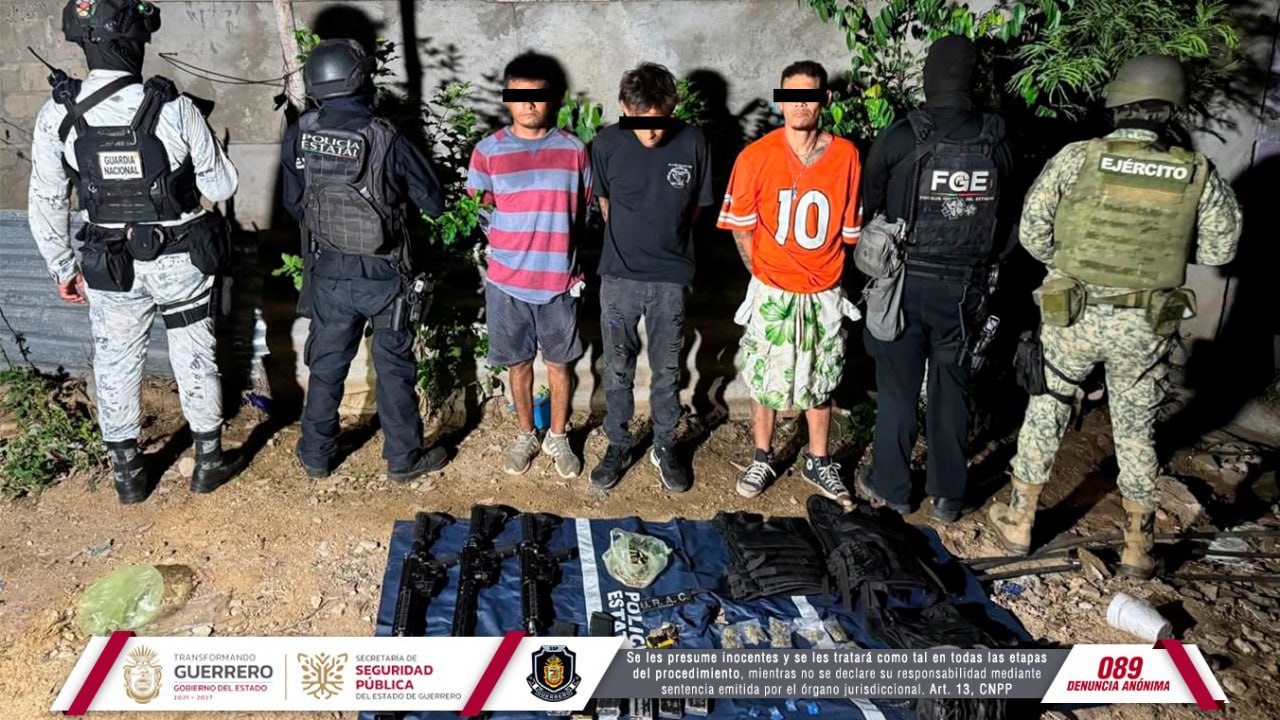 Acapulco, Guerrero, 18 de septiembre de 2024.- Como parte de las acciones operativas interinstitucionales, en el marco de la estrategia implementada en el municipio de Acapulco, elementos de la Policía Estatal, en coordinación con el Ejército Mexicano, Guardia Nacional y Fiscalía General del Estado, lograron la detención de tres individuos y el aseguramiento de armamento, equipo táctico, presunta droga y un vehículo.