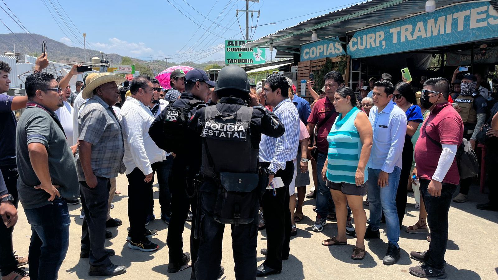 Acapulco,Gro., a 21 de junio del 2023.-Elementos de la Secretaría de Seguridad Pública Municipal, Guardia Nacional, Ejército Mexicano y Policía Ministerial acompañaron a personal de Vía Pública para realizar un desalojo de comerciantes que se encontraban instalados de manera irregular a las afueras del Hospital de el Quemado.