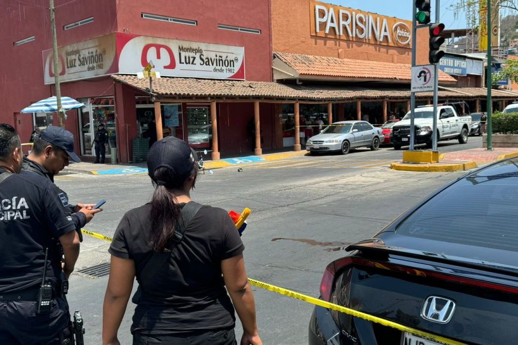 Un hombre que que se trasladaba en una motocicleta fue herido por escoltas cuando salían de la sucursal bancaria “Santander” ubicada en la avenida Benito Juárez de Zihuatanejo.