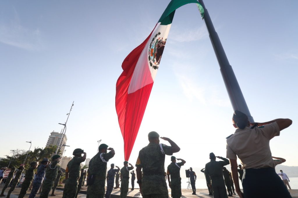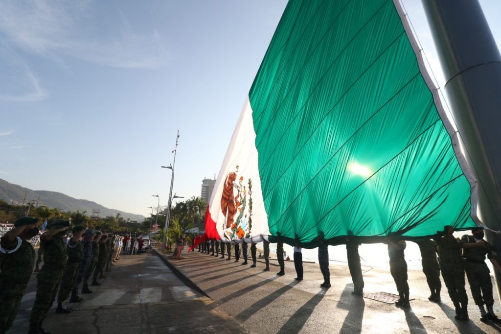 Acapulco, Gro., 24 de febrero de 2021.- Con motivo del Bicentenario de la Bandera Nacional –tras 200 años de la proclamación del Plan de Iguala en 1821 y que estableció las bases para la Consumación de la Independencia– el secretario General del Ayuntamiento, Ernesto Manzano Rodríguez encabezó el izamiento del Lábaro Patrio en el asta monumental de playa Papagayo.
